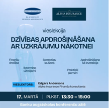 Finanšu pratības nedēļas 2025 ietvaros Banku augstskolas konferenču zālē notika vieslekcija “Dzīvības apdrošināšana ar uzkrājumu nākotnei”, ko vadīja Edgars Andersons un Gusts Janičenko, finanšu konsultanti no apdrošināšanas brokeru sabiedrības Alpha Insurance. Vieslektori iepazīstināja studentus ar finanšu drošības spilvena nozīmi, skaidrojot, kā dzīvības apdrošināšana var tikt izmantota kopā ar ilgtermiņa uzkrājumiem.